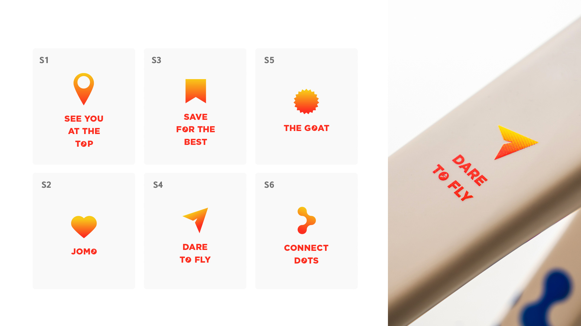 The JOMO palette also offers six unique top tube icons and slogans, giving every rider a way to express their mindset. Your frame becomes more than color; it becomes your personal statement.