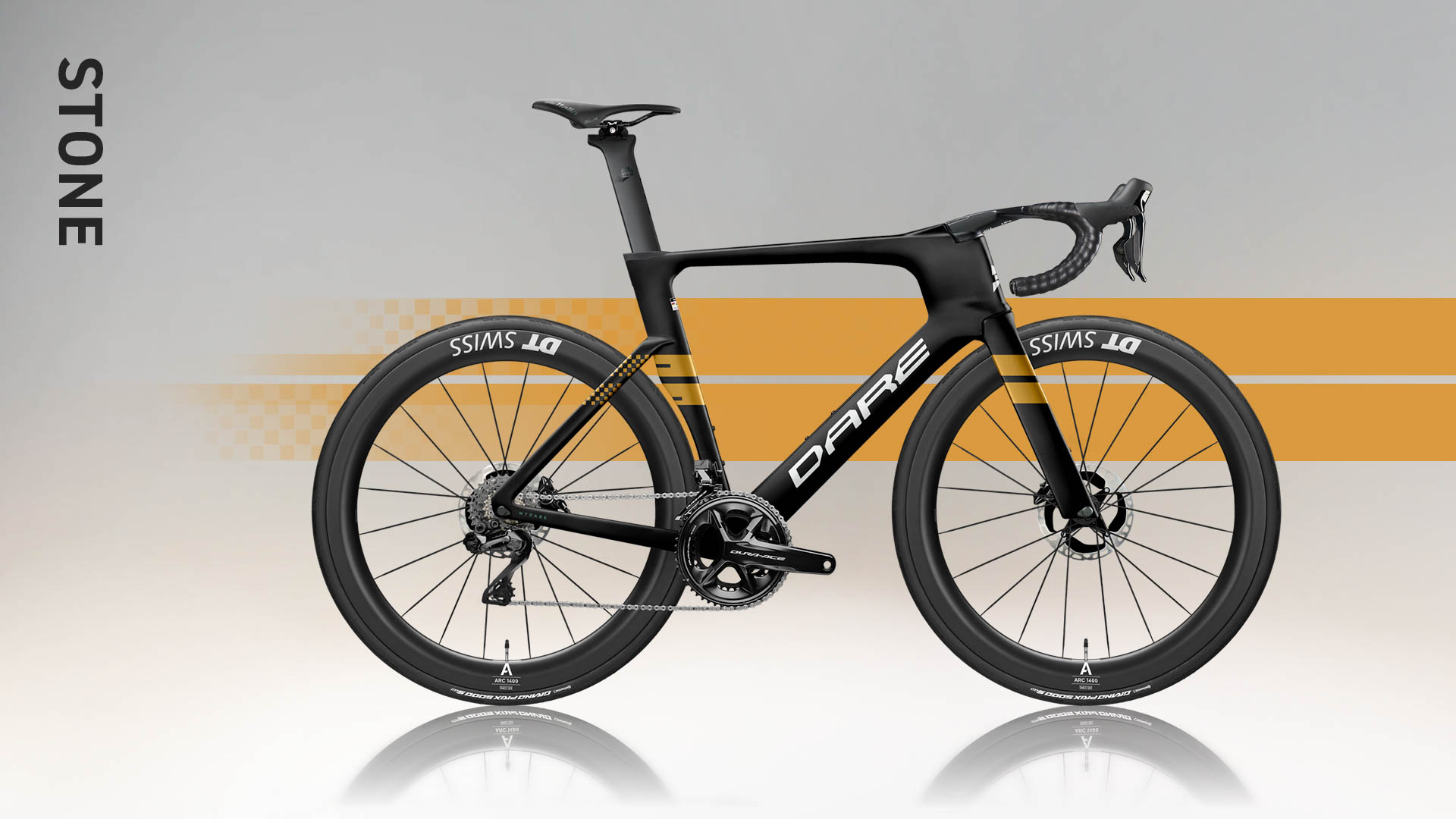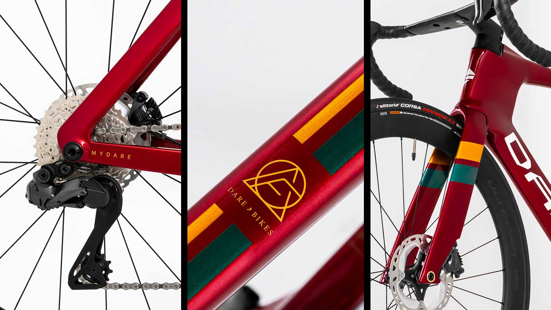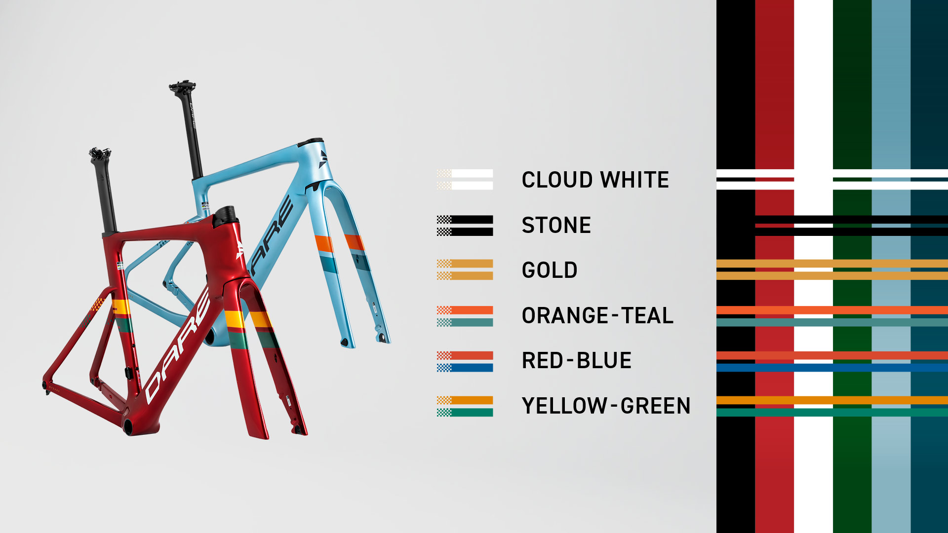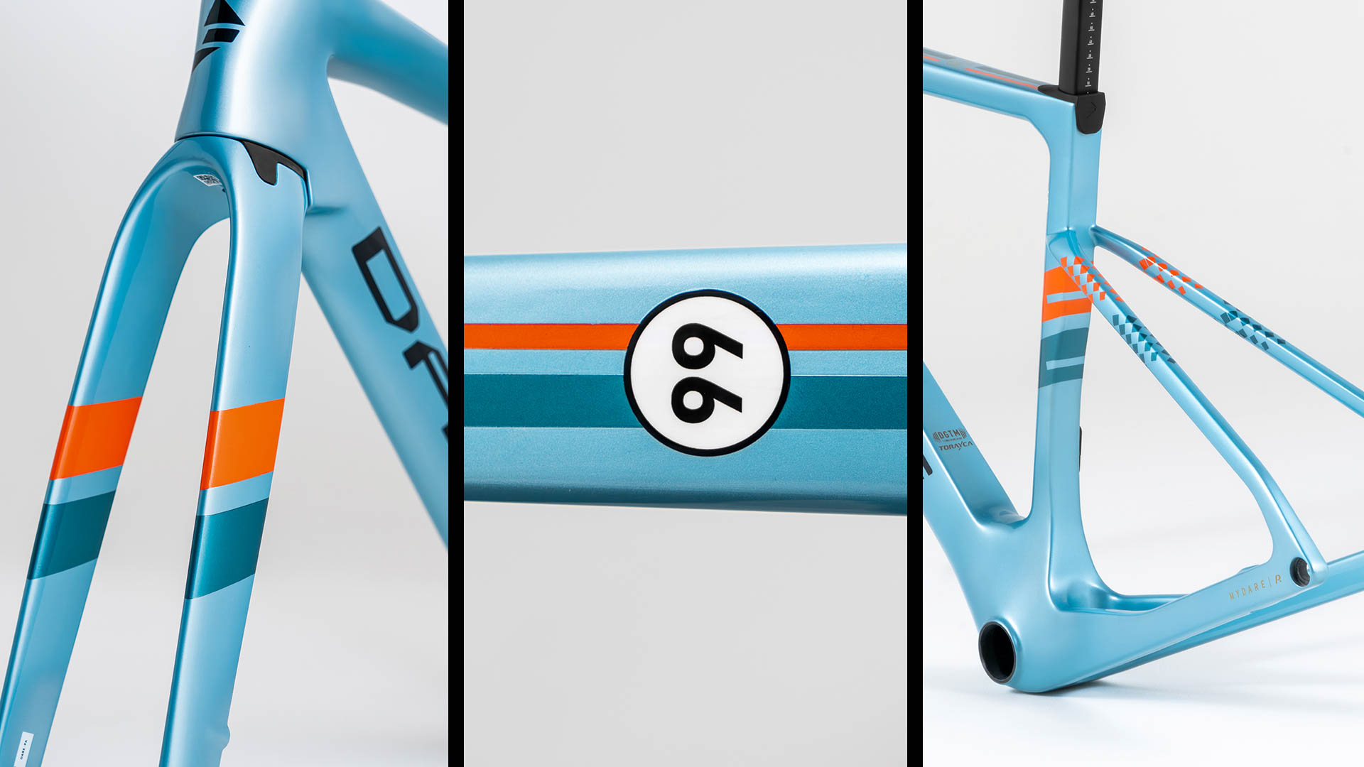 This collection features six striking colorways that pay tribute to classic race cars. A defining detail is the bold striping along both sides of the frame, paired with a custom top tube number option, turning your DARE from a bicycle into your own race machine.