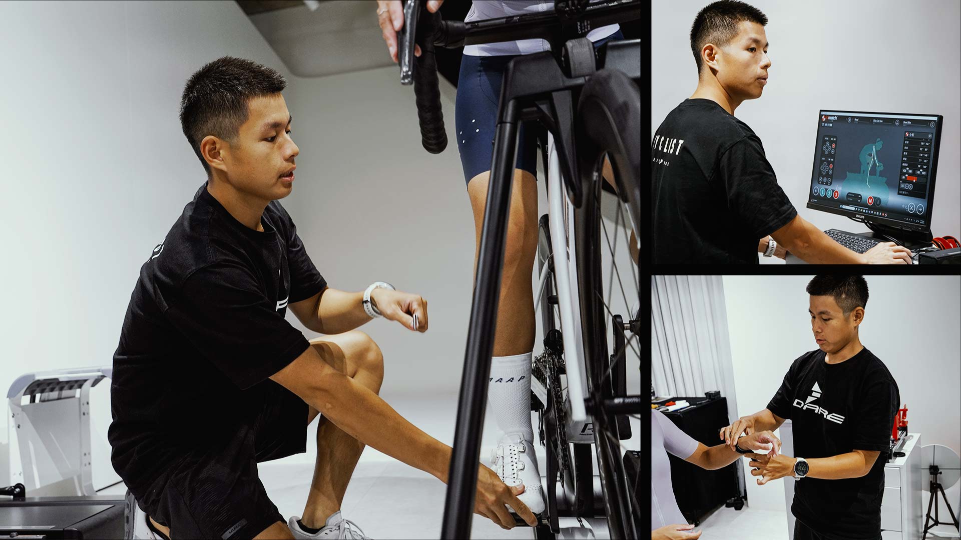 形象店有一台很厲害的 AI 機器 idmatch,能夠幫客人做動態測試並從大數據去分析,結合客人身體條件與騎乘需求,最後對話及我自身經驗做最後的微調。這整個過程,不只是幫客人組裝一台好騎的車,更是幫助他們開始認識自己的一段旅程。