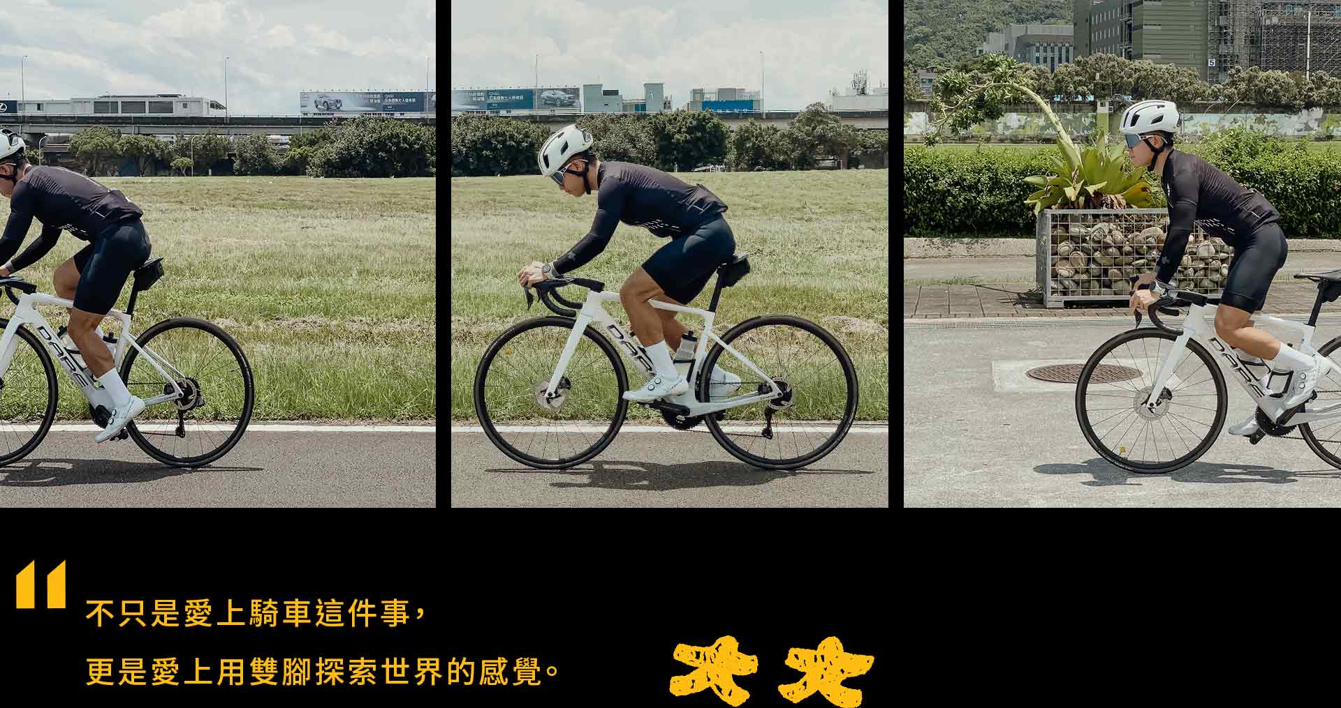 小時候我們家人很常一起去板橋河濱騎車。那對我來說,單車不只是運動,它是一種「一起出遊」的快樂。因此上大學買了人生第一台公路車,一萬多塊,開始一個人騎、跟朋友騎、跟女友騎,就這樣愛上了這個運動,不只是愛上騎車這件事,更是愛上用雙腳探索世界的感覺。