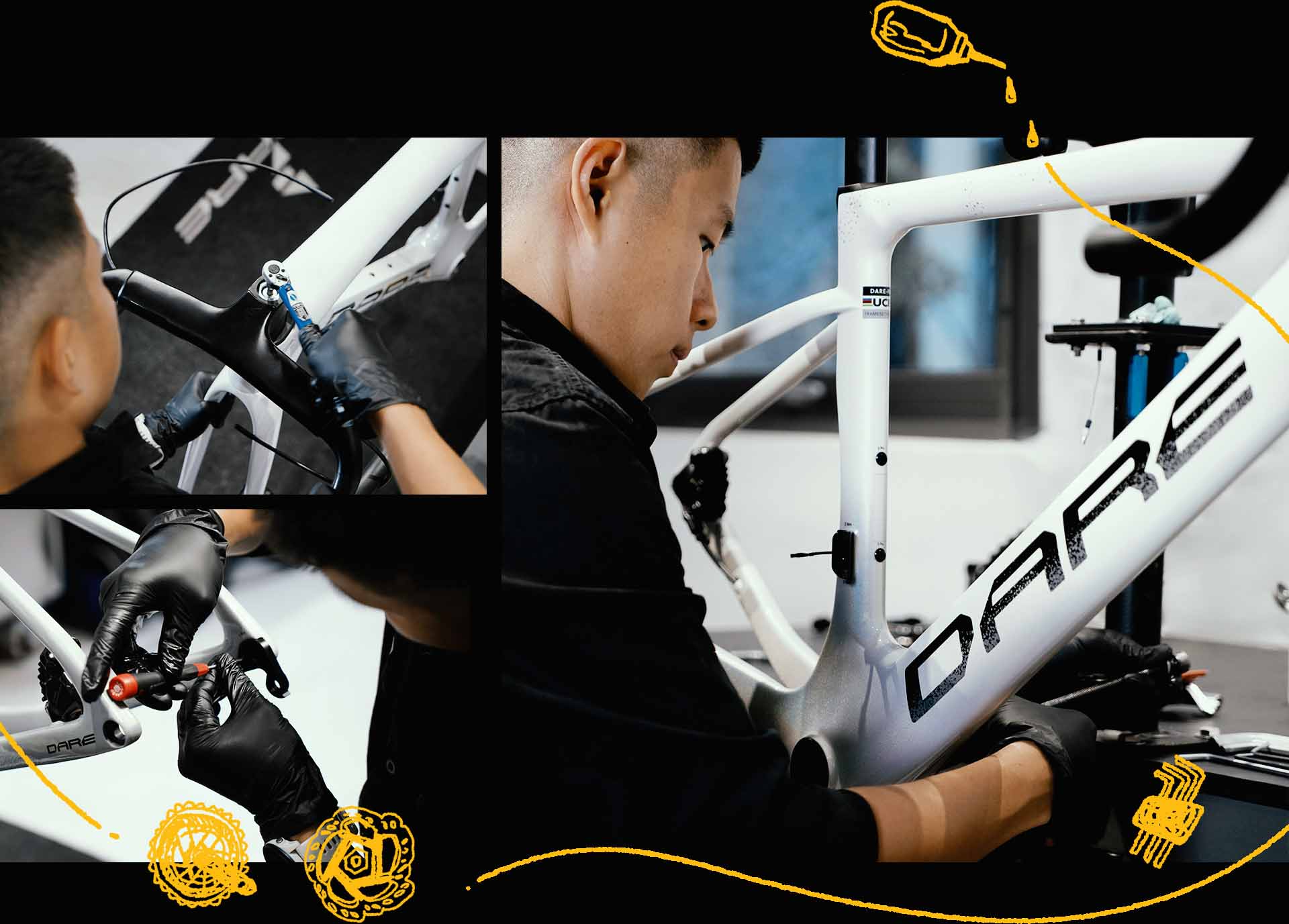 DARE 在碳纖維造車上很講究,這次 PA-AFO 採用一體式成型,這讓剛性與輕量都能非常好,工法也細緻,組裝時我能感受到品質的穩定。另一個很棒的是標配 CeramicSpeed SLT 頭碗組,對我這種容易流汗、常騎風雨路段的騎士來說,真的省下不少保養時間,對身為技師來說更是減少工作量。這樣的配置不只對使用者友善,對技師更是福音!